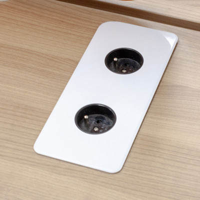 .Bloc prise encastré sur chaque plateau comprenant 2 prises secteur