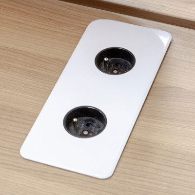 .Bloc prise encastré sur chaque plateau comprenant 2 prises secteur