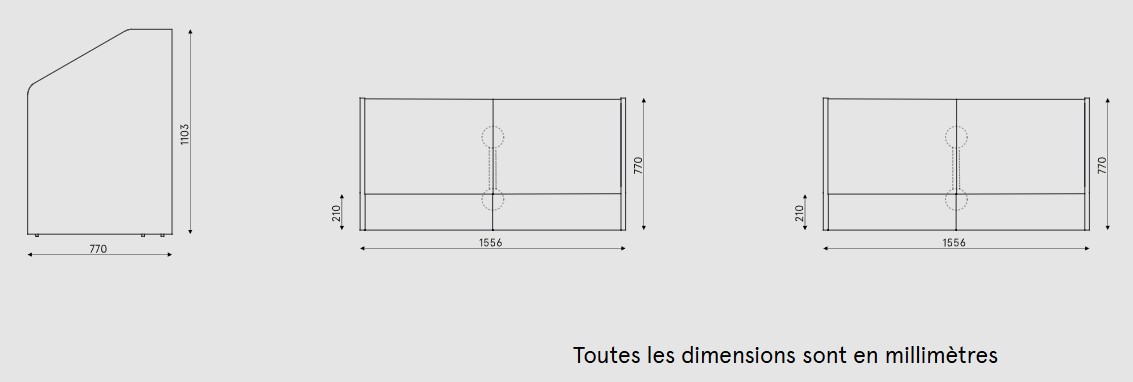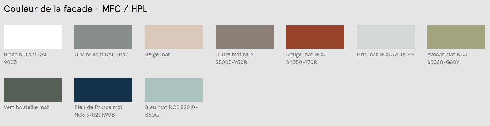 .Façade : stratifié HPL brillant finitions disponibles : Avocat mat, Beige mat, Blanc brillant, Bleu de prusse mat, Bleu mat, Gris brillant, Gris mat, Rouge mat, Truffe mat et Vert bouteille mat