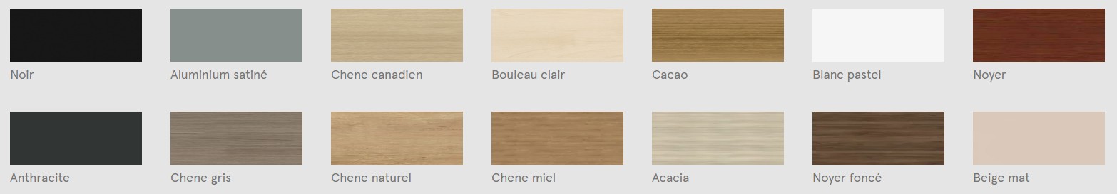 .Façade : Mélaminé ep. 28mm finitions disponibles : Acacia, Aluminium satiné, Anthracite, Beige mat, Blanc pastel, Bouleau clair, Chêne canadien, Chêne gris, Chêne miel, Chêne naturel, Noir, Noyer et noyer foncé