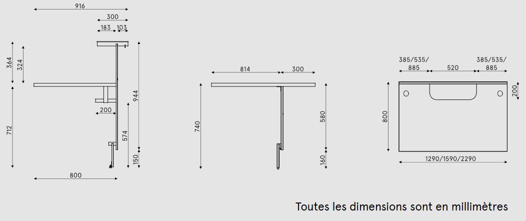 .Top et Plan de travail en particules de mélamine ep.28mm chants ABS assortis au plateau